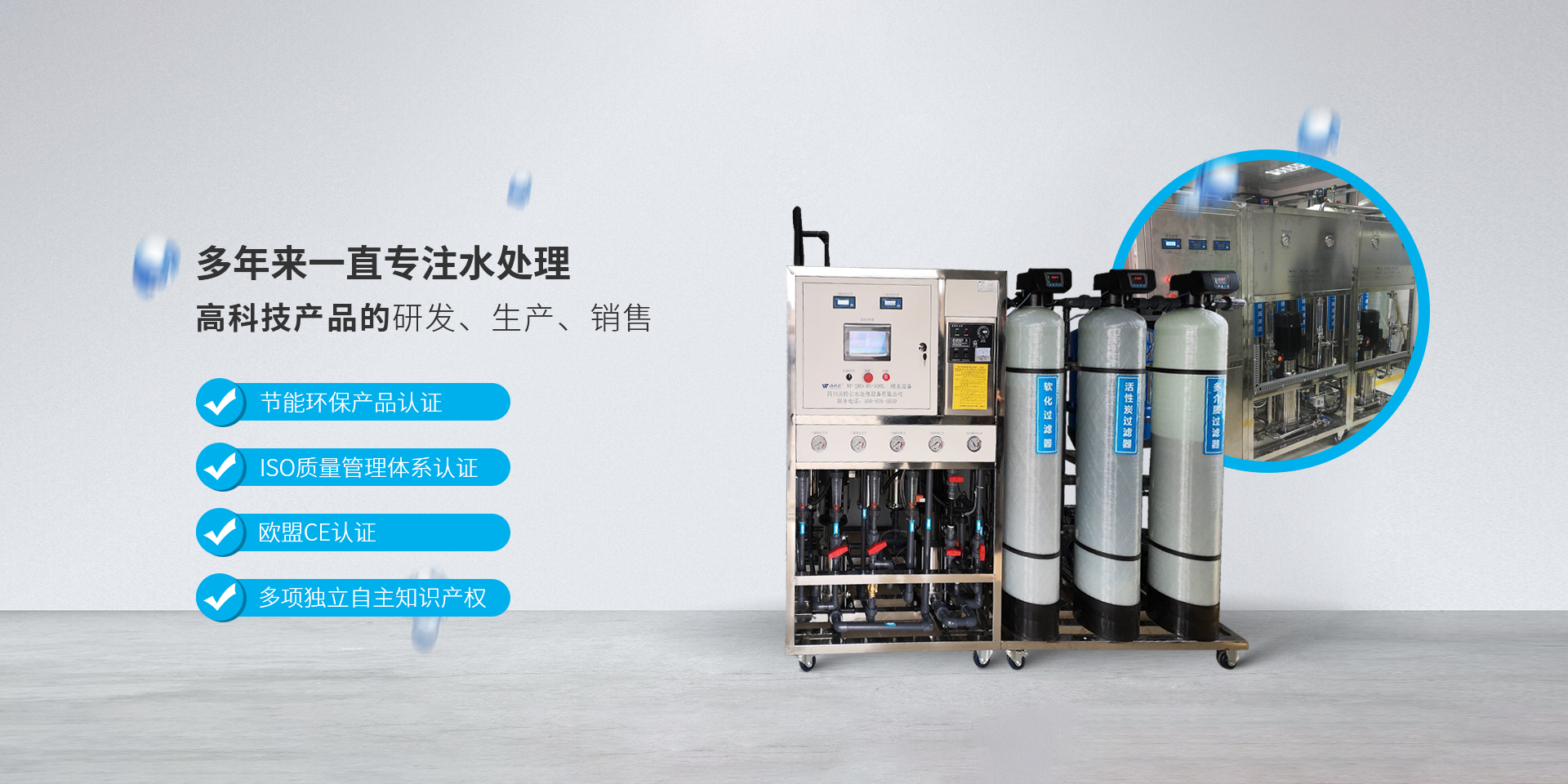 四川沃特爾水處理設備有限公司位于成都市溫江區(qū)成都海峽兩岸科技產業(yè)開發(fā)園雙堰路1919號20號樓,公司成立于2005年6月16日,擁有3000多平米的現代化廠房,是一家集純水和超純水設備的研發(fā)設計、生產銷售、安裝服務、技術咨詢?yōu)橐惑w的綜合型企業(yè)。 公司主要生產和經營實驗室超純水機系列、工業(yè)水處理設備等。